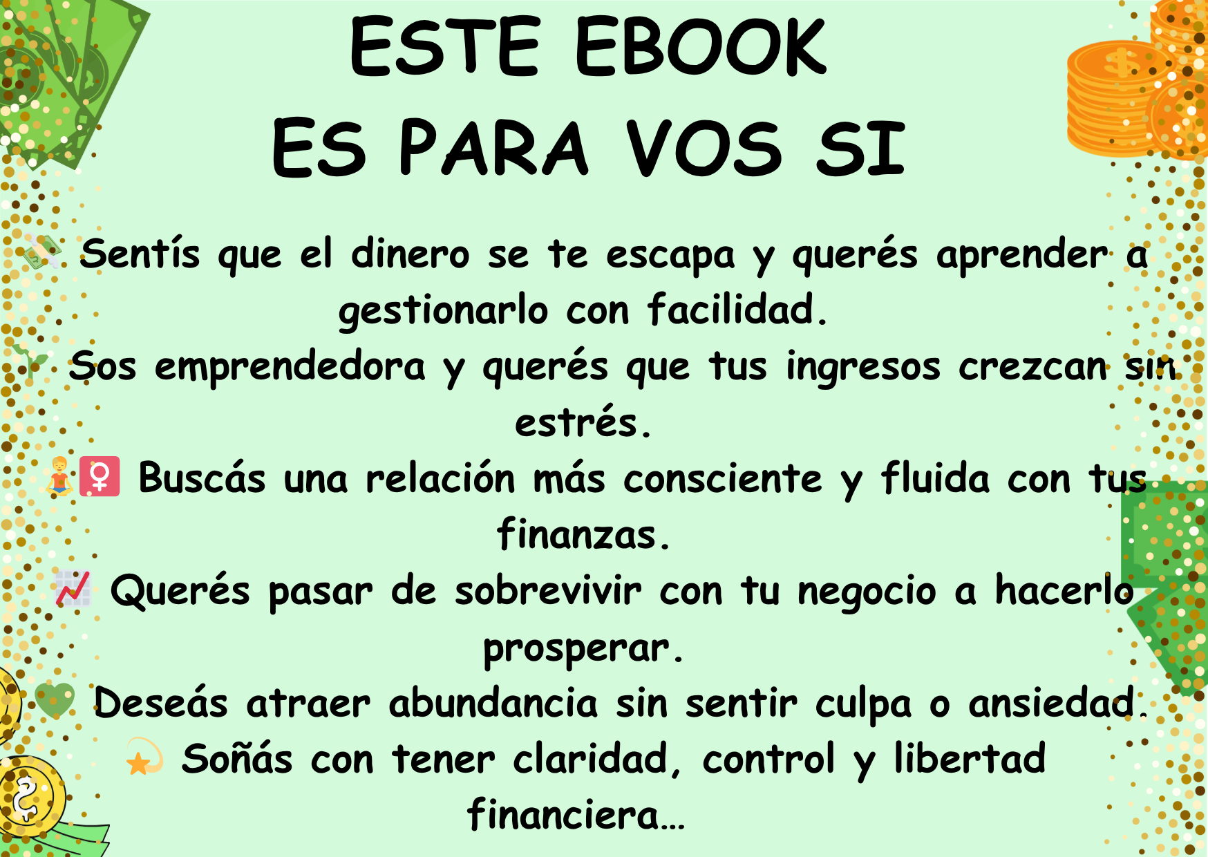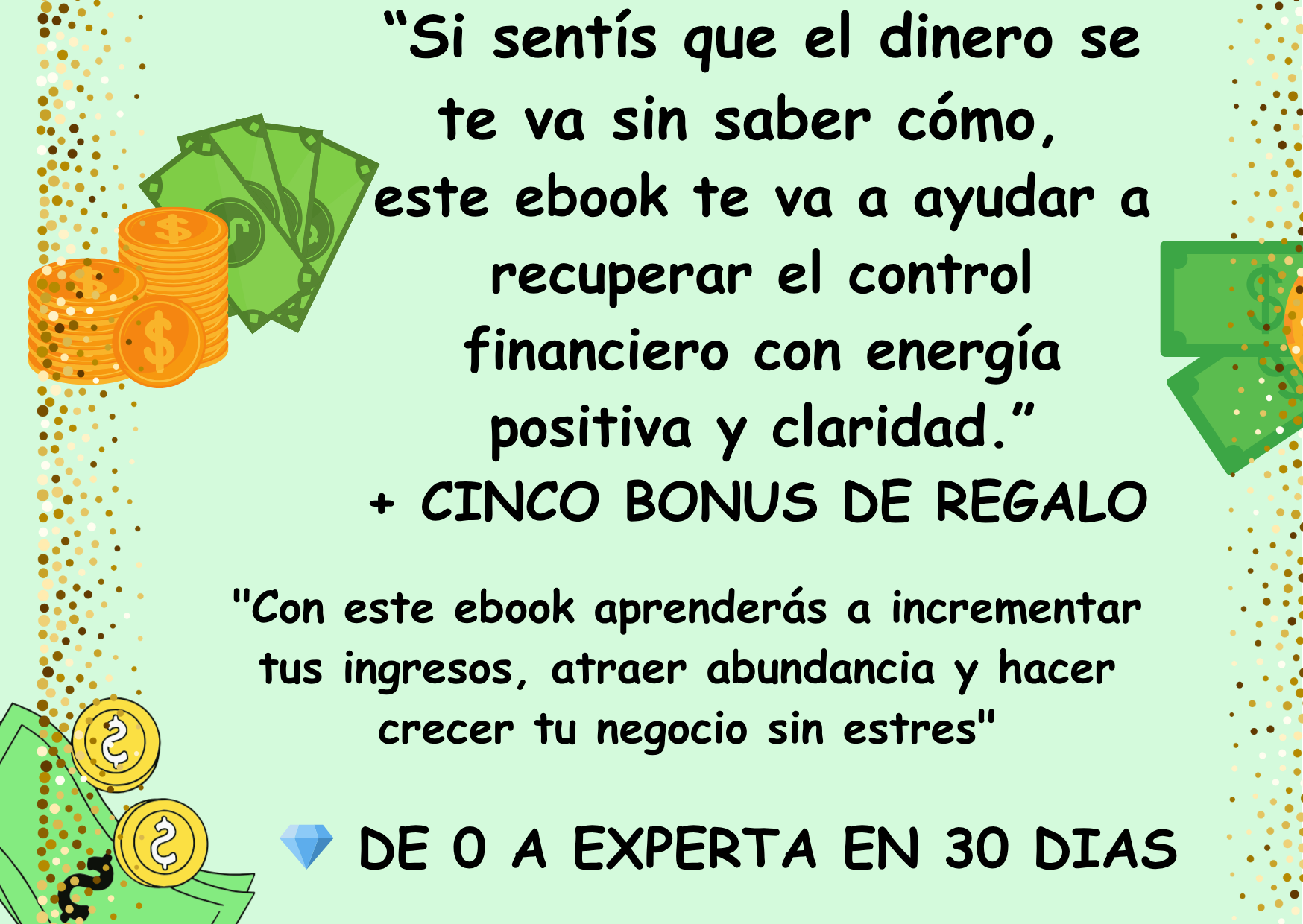 “Si sentís que el dinero se te va sin saber cómo, este ebook te va a ayudar a recuperar el control financiero con energía positiva y claridad.”